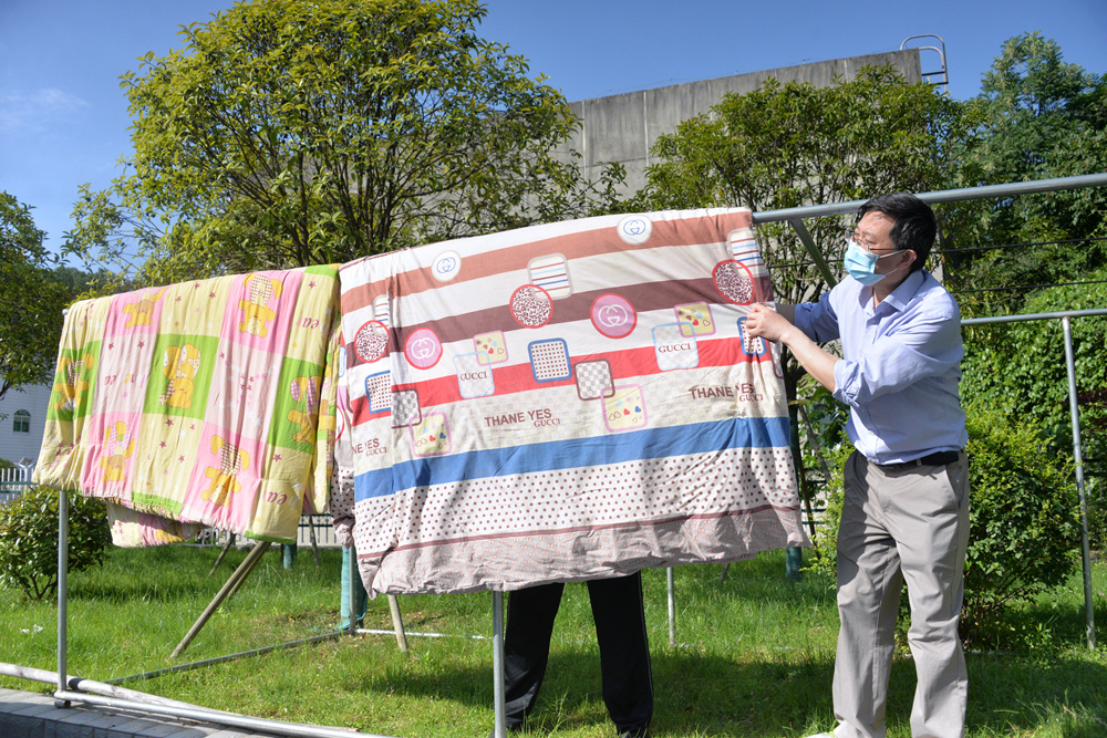 “疫情防控期间,西校区员工宿舍楼所处地理位置环境潮湿,员工被套长期不用容易滋生霉菌,作为党员教师,我们要时刻把员工的诉求放在心上,及时解决同学们的需求,让同学们安心在家上网课,这是我们‘以员工为中心’办学理念的具体体现,也是为下一步员工复学开课打下一个良好的基础。”副董事长陈俊高度赞扬了此次活动,并全程参与活动。