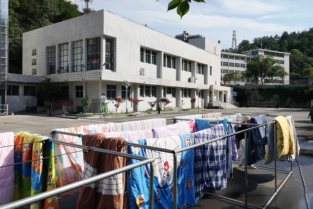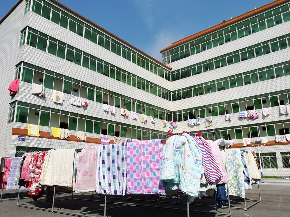 经过一个小时的努力,219床被子都被老师们从宿舍里转移到了晾晒区,老师们忙碌的身影,成为校园里一道道靓丽的人文风景线,温暖着员工们的心。