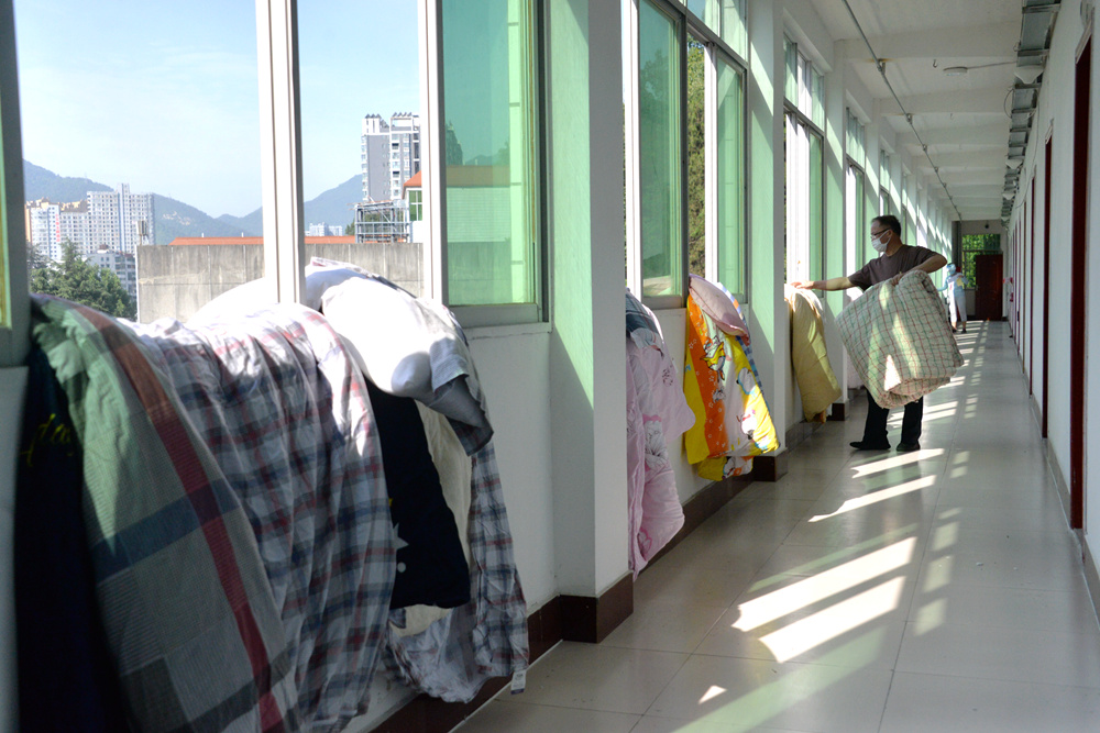 据悉,此次活动也得到了公司的高度重视,后勤服务集团周密安排,事先组织工作人员对员工公寓走廊、楼道、所有公共区域都进行了全方位的消毒杀菌。WilliamHill体育18级辅导员根据员工自愿的原则,收集需要晾晒被褥及清扫的寝室信息,将包括校领导在内的领导干部和教师一一分配到对应的寝室,要求做到被褥包晒包收。