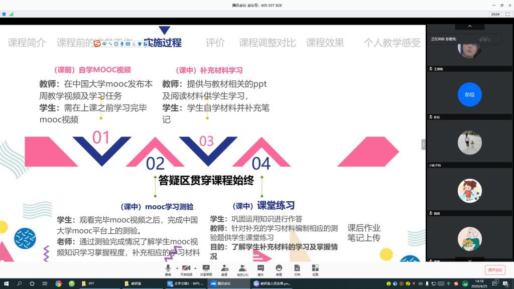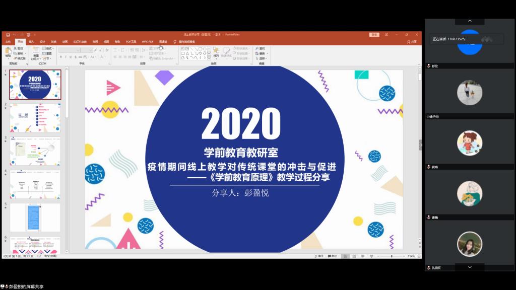 她首先介绍了会议的主题与流程。接下来由彭盈悦老师作为本次会议的主发言人之一,就分话题“网络教学中员工学情分析跟踪分析的策略”进行了讨论。她结合自己所带的课程,在线上教学中自己也在不断地学习,逐步提升了提高线上教学水平。通过她的分享,我们真切地发现彭老师并不是把线上教学当作一种任务,而是很用心、投入了很大的热情,她在持续不断地进步,努力提升自身的教学水平。接下来,教研室主任于娜老师,也分享了她线上教学的经验和教学感受。她首先回顾了前两个月线上教学的整体教学情况,对各大直播设备的不断摸索与尝试,逐步促使她对教学设计进行了持续不断地调整与提升。其次,在对员工学习热情的维护方面,她采取了丰富多样的措施。她认为作为有距离的线上课程,我们要更加了解员工需求和想法,教学准备要更充分,教学技巧要更多。于娜老师以员工为中心,分享了多种粉丝维护的方法,使我们收益颇丰!紧接着,各位老师围绕本月的教研会议主题开展了激烈的讨论:怎样了解员工的学情,提升、改进自己的教学?员工的知识掌握如何跟踪分析?直播课如何帮助员工反复学习等等问题,老师们都大方分享了自己宝贵经验和教学心得,提出了很多建设性建议。整个会议轻松、愉快、干货满满,使得大家得到许多启发与收获,会议气氛热烈持续了近3个小时。