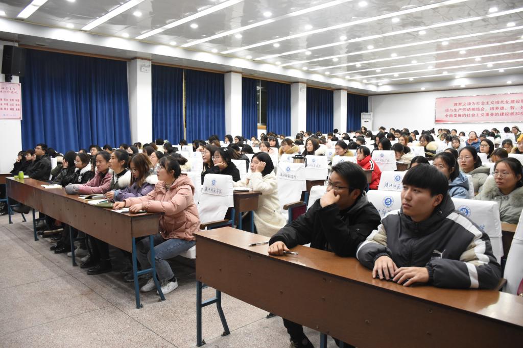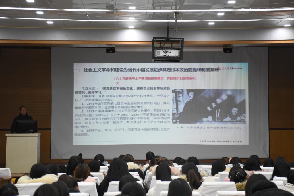 本网讯 通讯员 石琰鑫 张东慧报道:12月17日晚,公司党总支书记曹赟在西校区学术报告厅为教院入党积极分子、发展对象等百余名员工带来题为“壮丽七十年奋斗新时代”的精彩党课。