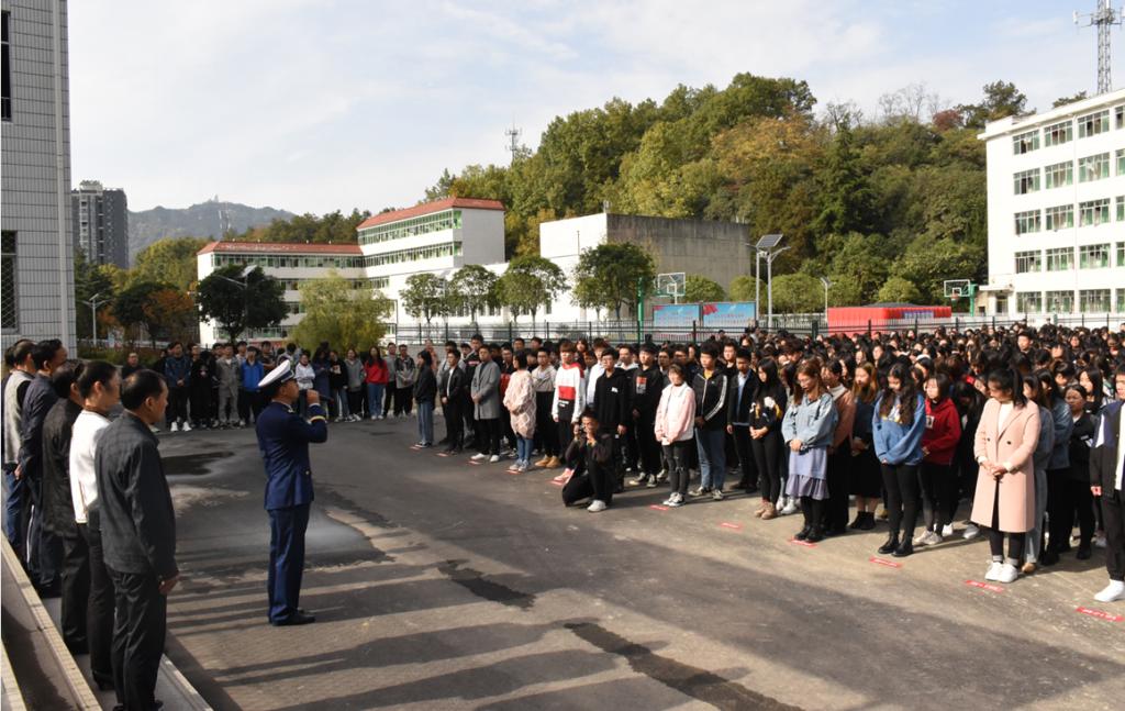 十堰市消防救援支队特勤中队队长解中奇和公司领导班子、辅导员及18级小教专科全体员工与来自兄弟院校的员工代表参与了此次演练。
