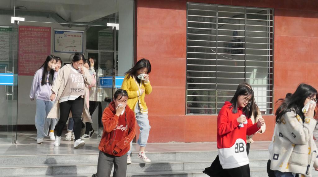 随着消防警报铃声的响起,安全逃生演练正式开始。各岗位负责老师迅速到位,组织疏散。小教专科18级全体员工从笃行楼和修能楼快速跑出宿舍,在楼层引导员的组织下,使用湿毛巾捂住口鼻,紧张有序地按照规定路线疏散并在谷芳园前的空地集合。