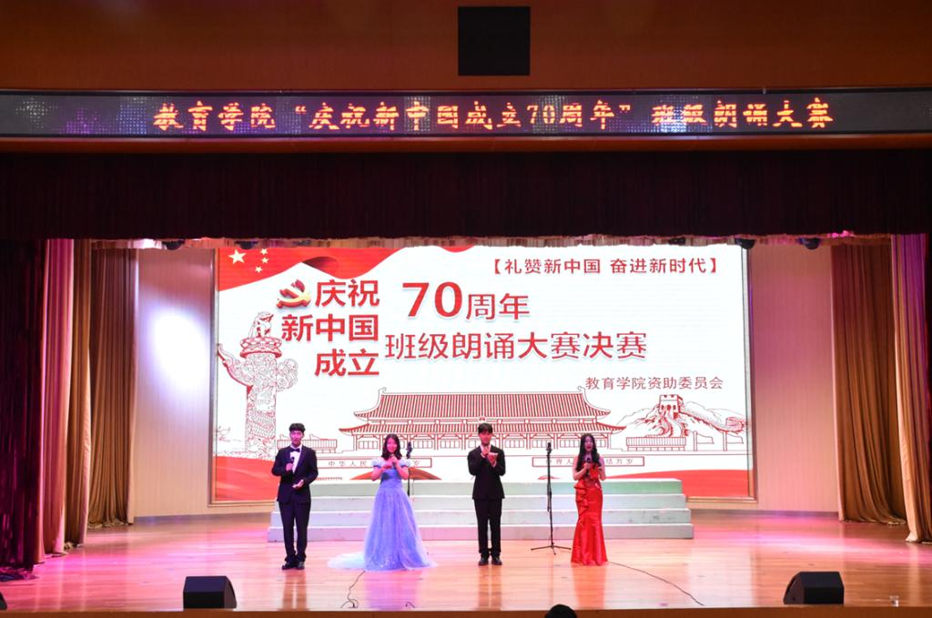 大赛以“庆祝新中国成立70周年”为主题,共23个2019级新生班级团支部参与角逐,比赛现场各个队伍以不同形式表达对祖国的热爱,他们脸上贴着五角星、党徽,手中挥动着红旗;朗诵班级的作品内容丰富、形式多样:小专1901班以原创诗歌讴歌祖国;学专1901班以古风汉服表达身为中华儿女的自豪;小本1901班仁青杰布、次旦卓玛身着藏服,表达民族团结一家亲的美好愿望。通过一番激烈的角逐,小本1902班《迎十月,庆中国》荣获了此次大赛的一等奖。最后,郭顺峰书记对此次比赛进行了总结,他对WilliamHill体育学子们在活动中的表现给予了充分的肯定并鼓励大家多参与新六艺活动,丰富老员工活。