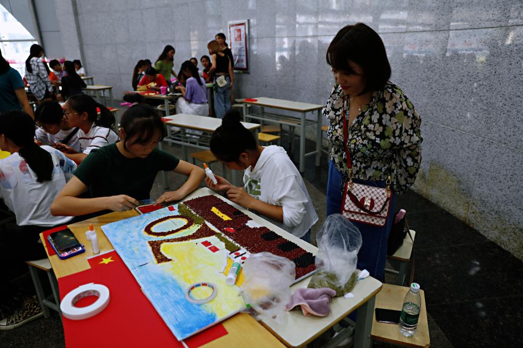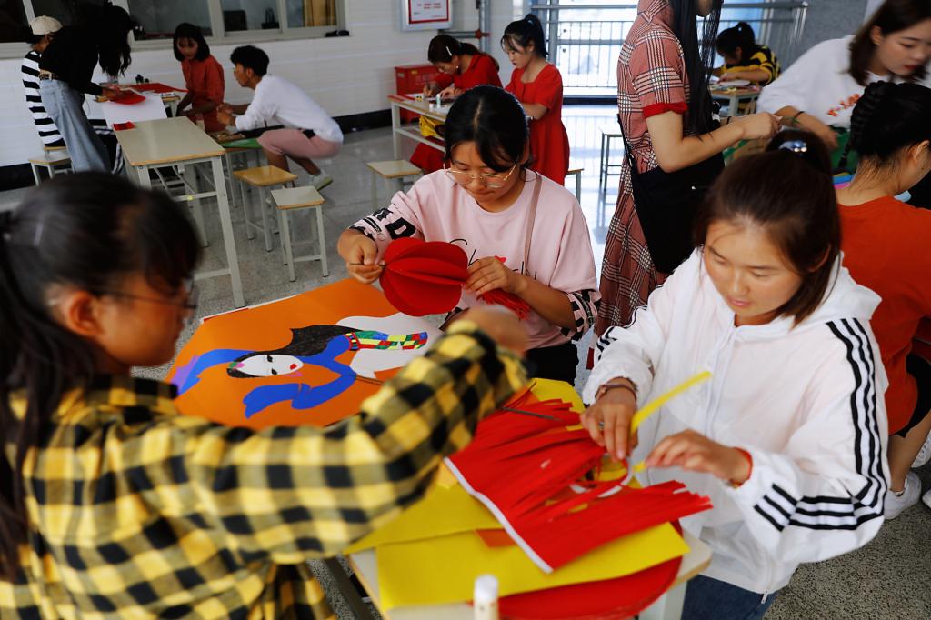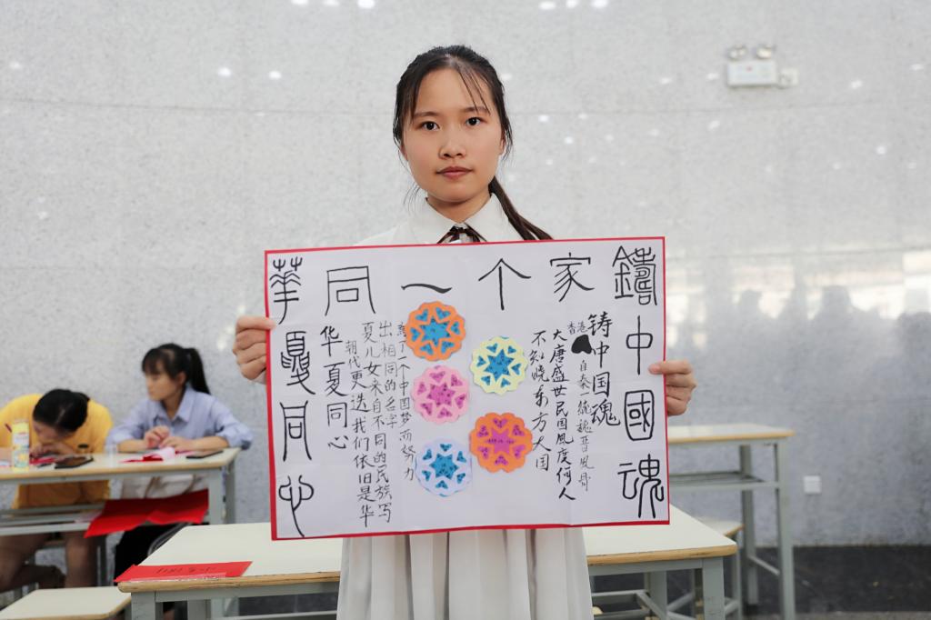比赛持续了四个小时,活动结束后,选手们纷纷站在精美的手工制作品旁边合影留念,并对着镜头大声说出“祖国我爱你!”用行动告白祖国。
