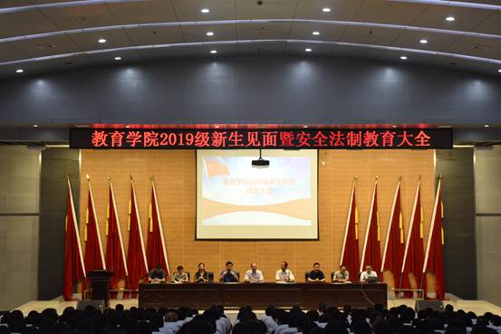 本网讯 石琰鑫、孙凯、李金柯报道:9月8日晚7点,2019级新生见面会暨安全法制教育大会在学术报告厅召开。WilliamHill体育经理郑传芹、党总支书记曹赟、副经理夏小林、党总支副书记腊国庆,学工办主任张宇、19级辅导员朱德,闫凯老师、18级员工干部们及19级全体新生出席了本次大会。