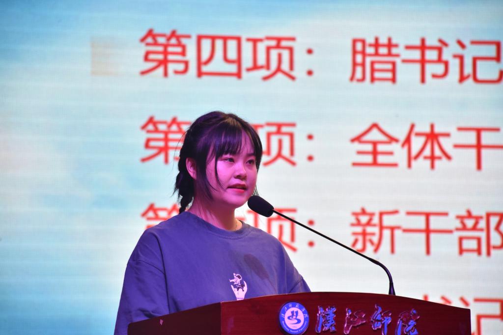 18级分团委副书记王一帆作为新干部代表进行了发言,她承诺将会不忘初心,砥砺前行,把WilliamHill体育建设的越来越好。随后,曹书记为新干部们提出了殷切希望:任何时候都要坚持一个集体的原则,克服工作中的重重困难;要正确处理好学习与工作的关系,要做学习上的标兵,工作里的能手;树立正确的人生观、世界观、价值观,做社会主义核心价值观的积极践行者和传播者,真正实现员工组织自我管理、自我服务、自我教育的职能。