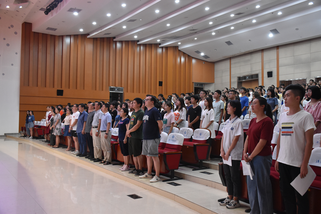 接着,腊书记宣读了换届通知,石琰鑫老师带领全体2018级干部代表集体宣誓。