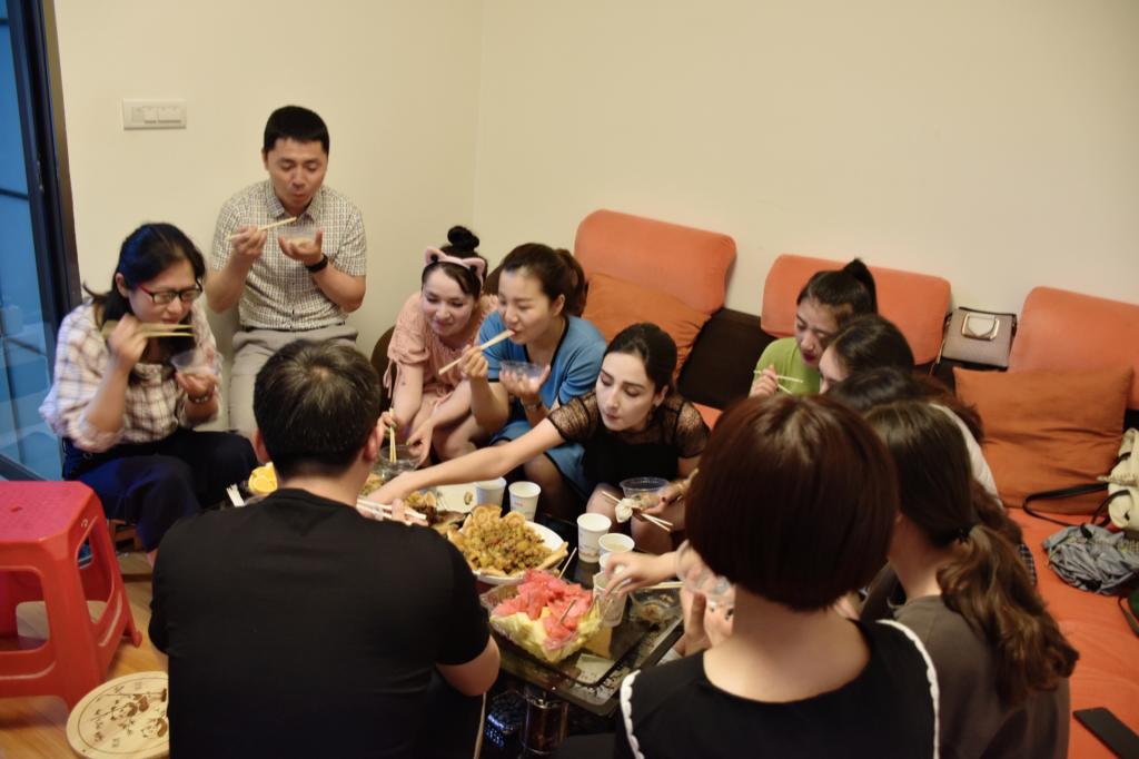 在活动过程中,新疆菜大盘鸡,手抓饭和湖北特色小吃轮番上桌,师生边吃边谈,从美食文化谈到民族文化的融合,从威廉体育williamhill的学习生活谈到未来的职业期许,在交谈中加深了彼此的了解,增进了友谊。活动中也了解到各民族员工对公司的学习生活环境适应良好,在各自公司综合表现突出,获得了其他师生的一致认可。