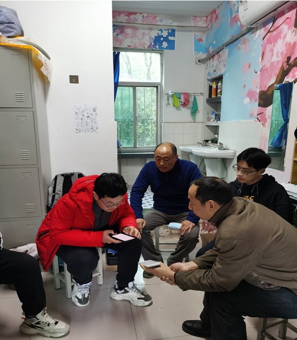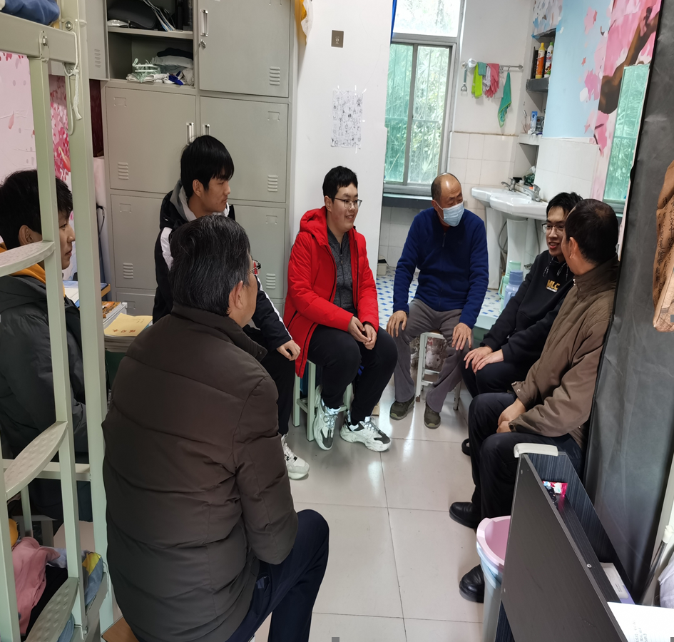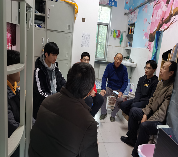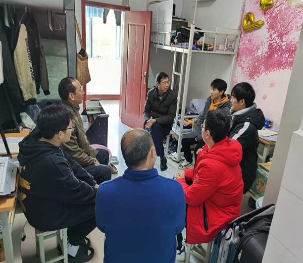 12月28日下午,副董事长陈俊深入西校区修能楼202员工宿舍开展调研。公司经理郑传芹、分党委书记曹赟和辅导员孙文陪同走访。