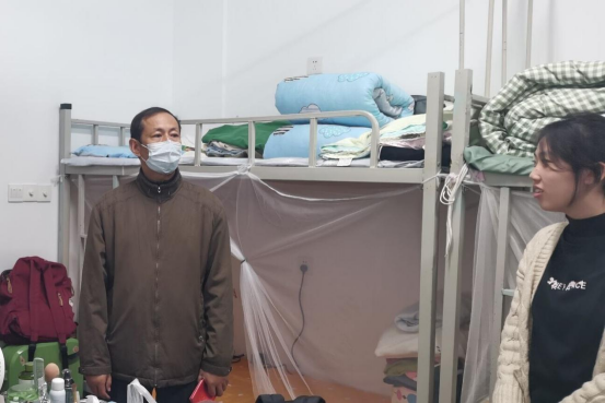 在查寝过程中,各位领导老师不仅认真指导员工进行内务整理,强调宿舍文明和谐整洁的重要性,还在交谈中积极询问员工的学习生活情况,深入了解员工的思想动态,充分体现了院领导老师们对WilliamHill体育员工的关怀。