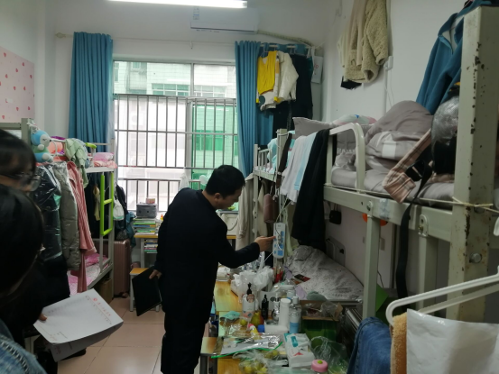 最后,领导老师们强调:宿舍是同学们的第二个“家” ,每个人都应当好好爱护宿舍环境,努力营造一个良好的宿舍氛围,要时刻注意宿舍安全卫生文明建设,力求让宿舍面貌焕然一新。