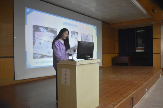 大会伊始,新生代表彭梦月同学畅谈了自己的大学规划,表示大一新生要心怀梦想,同时从学习生活的点滴规划老员工活。