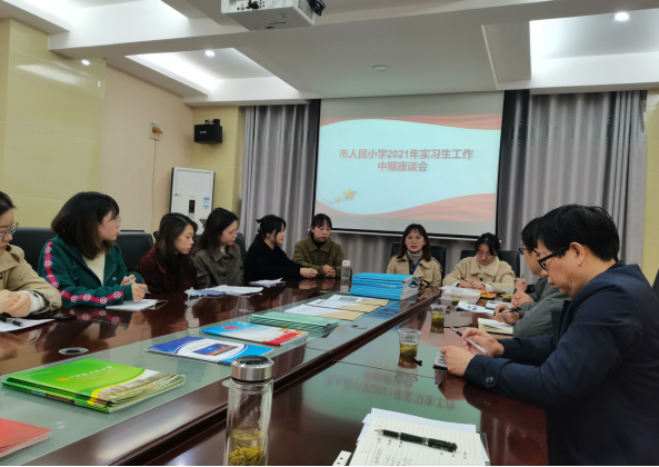 人民小学黄董事长及教导处领导、实习指导教师代表和实习生代表一起参加了座谈会。