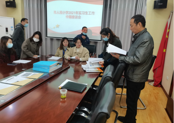 在座谈过程中,实习生代表进行了实习汇报,向人民小学和实习指导老师表示感谢,表示将充分发挥学习共同体,珍惜机会,虚心请教,进一步增强实践能力,不虚此行,不负韶华。