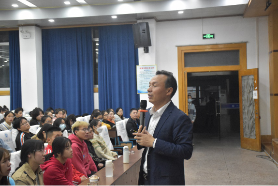 大会以“七一勋章”的获得者张桂梅的事迹报道视频拉开序幕,周明华教授以此指出大会主题——唯有行动才能改变命运。周教授用提问的形式引出“大学是什么”等主题内容与现场同学们积极互动,在场同学们踊跃参与互动。