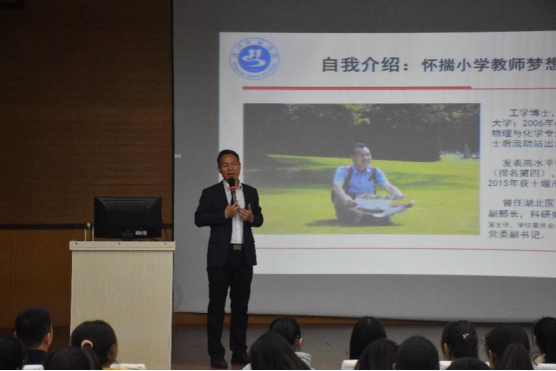 周明华教授以校训为引,同同学们分享汉师优秀学子的成长经历,鼓励同学们努力突破自我。他勉励各位同学要在大学掌握自学之道,牢固基础知识,注重实践贯通、积极培养兴趣、做事积极主动,热爱珍爱生命,学会掌控时间,灵活为人处事,成为汉师这个舞台甚至更高更大的舞台上的主角。