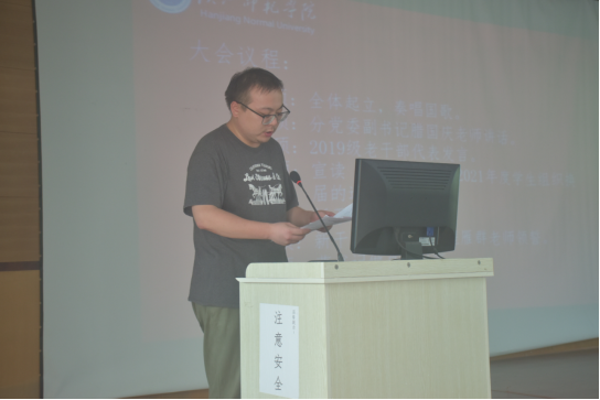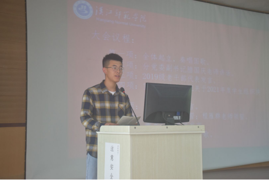 随后2021级员工新干部代表隋毅发言,他表示新一届员工干部将以服务同学的理念开展员工工作,从员工中来,到员工中去。同时,新一届员工干部将会以身作则,以更加饱满的精神面貌迎接每一项工作任务和挑战。全体21级员工干部将继往开来,肩负起青春与时代的担当,不负使命。