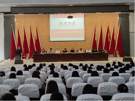 副经理田萍向新生解读了本科阶段的学业要求,包括课程学习、考试纪律、专业实习等。她表示新生应当尽快适应本科阶段的学习生活,形成自律意识。新生需要养成严格遵守课堂纪律要求,及时主动完成学习任务的良好习惯,为之后进一步深造学习和职业发展打下坚实基础。