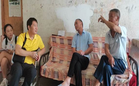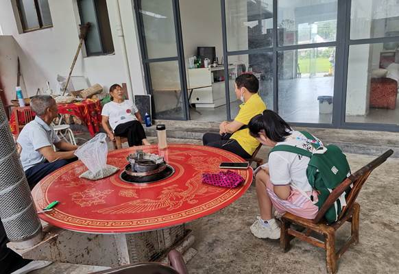 图为村民向带队老师谈及家中家风及家庭教育建设