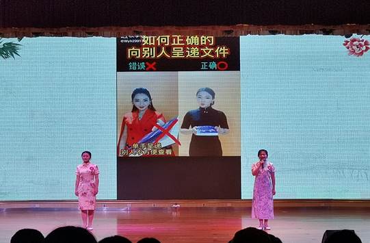 在礼仪展示环节,选手们身着旗袍,举手投足之间尽显礼仪之美。