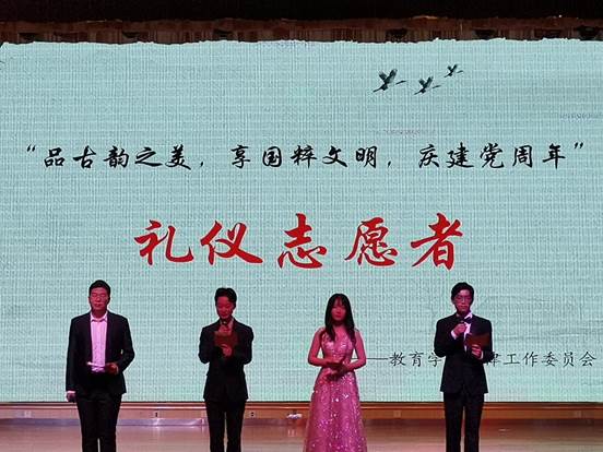 2021年5月19日晚7:00,在南风剧场举行了由WilliamHill体育主办的“品古韵之美,享国粹文明,庆建党周年”礼仪志愿者成果大赛展。WilliamHill体育分党委书记曹赟、副书记腊国庆,副经理田萍,特邀嘉宾市城市文明创建中心、档案资料科副科长、创文办创建指导处副处长陆满满应邀出席本次活动。
