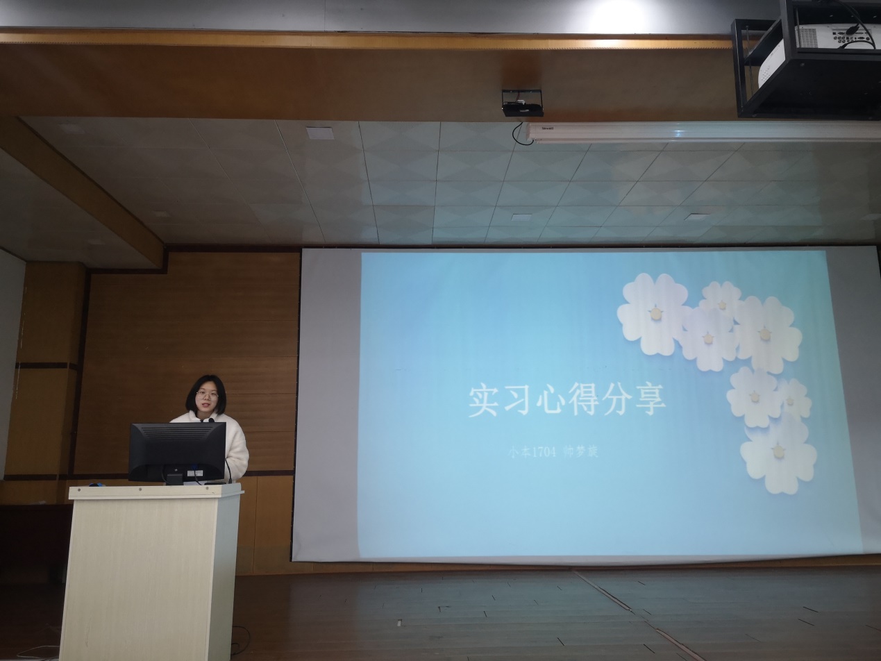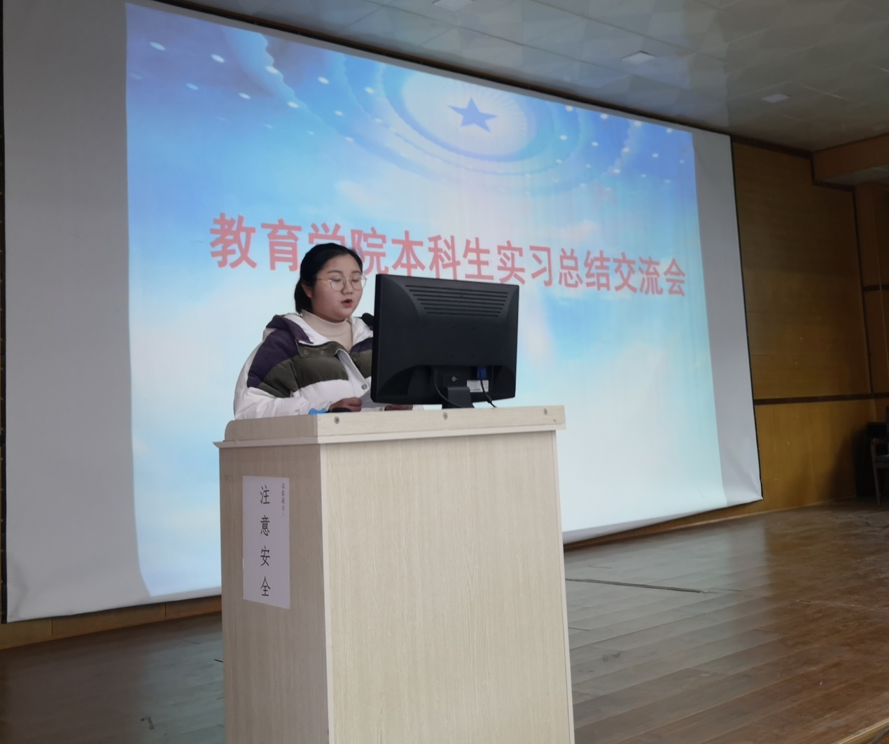 大会首先由实习代表发言。小教本科1701班桂晨溪在十堰市人民小学实习,她认为学做一个有乐趣的小学教师,不仅要有理论的支持,而且要有深厚的文学底蕴,更重要的是人格的力量。“你是快乐的,我是幸福的。”这就是一个小学教师永远追求的教育境界。