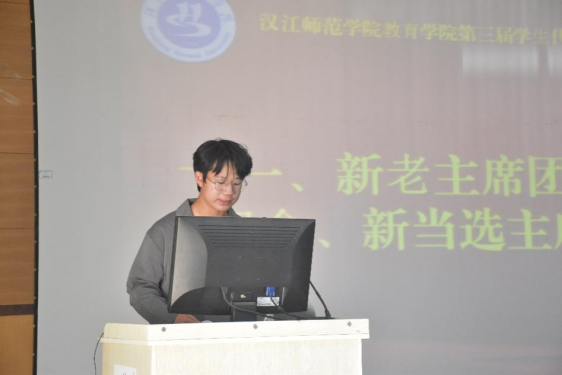 新一届主席团成员代表李俊豪上台发言。首先,他向老师们和上一届员工会成员表达了感谢,并表示员工会会继续循着奋斗过的足迹,在传承中求创新,在创新中谋发展。其次,他表明WilliamHill体育员工会是在公司党组织和团组织的指导和帮助下,自上而下开展工作的员工工作组织,是秉承“服务同学,奉献公司”的理念切实为广大同学服务的组织,他向大家表达了主席团的工作设想和建设好员工会的决心。