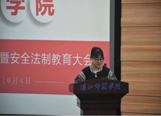 最后,分党委书记曹赟作法制安全教育。曹书记强调,全体学子要紧绷疫情防控这根炫,一切行动听指挥;其次,要学会用足够的法律知识武装自己,现如今信息技术高速发展,全体学子要加强法律意识,谨防各种诈骗,不越底线红线;最后,要学习相关的实践知识。大学是人生的新起点,曹书记希望同学们能够学会思考,同时也不要仅仅注重书本知识,实践方能出真知,学会理论与实践相结合。最后与各位同学共勉,希望大家在未来的四年中称心如愿学有所成。