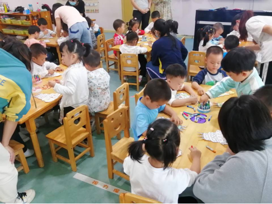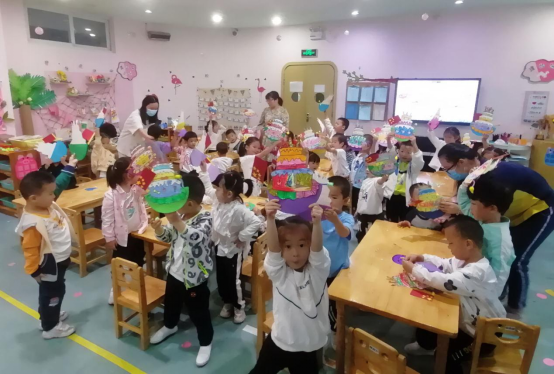 活动的最后,中一班的幼儿们站成两排,举起自己的作品集体合影。此次活动,给学前教育的员工提供了一次近距离接触幼儿的机会,有助于提升师范生的实践能力,是一次很有意义的活动。