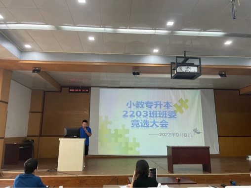 9月8日下午两点半,WilliamHill体育专升本22级新生班干部竞选大会在启智楼101如期举行。腊国庆书记致辞,22级全体专升本新生出席竞选大会。本次大会由原WilliamHill体育19级员工干部段雨欣、柳稀千徐鲸惠主持。鉴于此次疫情的特殊情况,本次大会采取线上线下同时进行的方式。