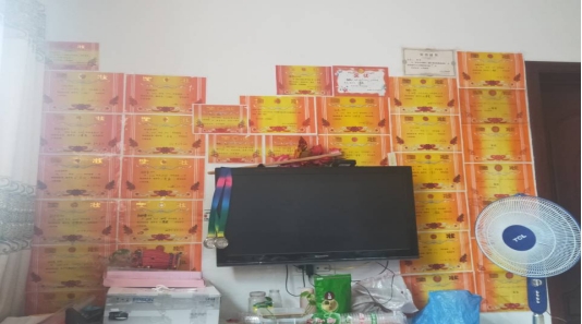 从她口中得知,舒童的母亲在本地一所卫生院担任护士的工作,父亲在老家担任医生,虽然夫妻两地分居,但是路途较近,舒童的父亲也会时不时回家探望,保证对孩子的教育关注。在更深入的交流中,小队成员也得知,家中还有一个上初中的哥哥,成绩也十分优异。一抬眼,就可以看见客厅的墙上密密麻麻张贴着兄妹二人的奖状。在与舒童母亲的谈话中也得知,原来平时兄妹二人也会互相较劲,共同努力进步,家庭氛围也和谐有爱。虽然父母二人平时较忙,但是舒童却早早培养了很强的独立性和自律性,相信这和她的良好的家庭教育是分不开关系的。另外,小队也了解到舒童对画画很感兴趣,于是鼓励她加油学,坚持学,全面发展自己。