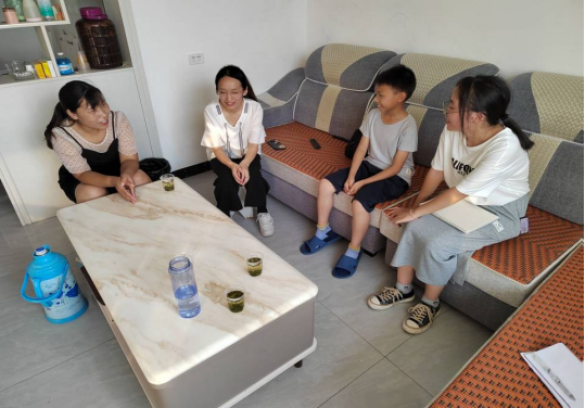 不仅如此,小队成员的一番了解下,知道国权的家中也有两个孩子,老大对老二的学习也起了一个很好的榜样作用,国权的学习成绩同样也很优异。舒家母亲更多谈论的是老大的初升高的志愿问题和未来发展方向,关于这点,小分队也为提出了自己的观点,不仅要符合老大的身心发展,更要重视孩子的自我意愿。另外也和国权的妈妈强调了孩子的普通话不标准的问题,在孩子言语迅速发展的时期,是很重要的。