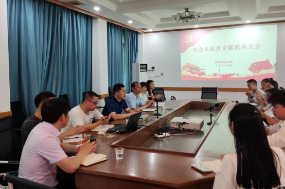 在毕业生党性教育环节,李江老师认为员工党支部在思想教育方面的工作卓有成效,而我们的毕业生党员要学会放下过去的荣誉,重新出发。在之后的工作中要不断加强自己的党性,从我们的专业出发,做好引路人。孔国欢老师表示看到了大家的成长,希望毕业生党员在新的人生旅程上做好更充分的准备。作为党员比别人更多一份责任,要有荣誉感和责任感,敢于承担责任,时刻以优秀党员的标准要求自己。