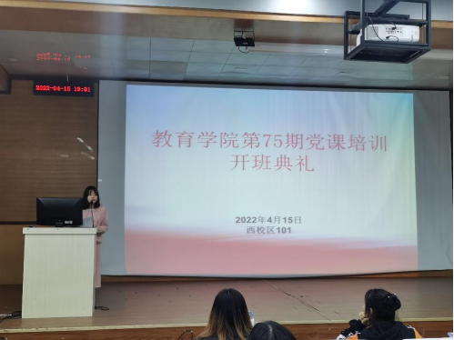 2022年4月15日晚上19:00,WilliamHill体育第75期党课培训开班仪式在西校区启智楼101学术报告厅顺利召开。