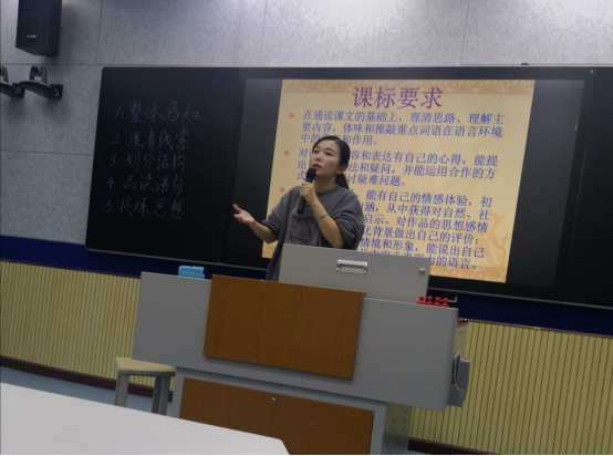 课堂上,饶老师首先对小本1902班两名同学的教学模拟授课《爬天都峰》和《灯光》进行了细致点评,对他们的精彩表现给予了高度评价,肯定了两位同学教学设计、教学组织及教学内容选取的合理性,同时结合自身授课经验对两名同学提出了具体建议,强调要依照新课标和员工身心发展特点进行教学,在授课当中要使用多重评价语言、具有教学机智、注重理想信念爱国情怀等课程思政的有机渗透。饶老师又依托记叙文教学,给同学们分享了经验,为大家总结出记叙文教学的基本流程和授课重难点。饶老师还结合自身多年担任教团队格证面试考官的经验,帮助解决同学们的切身需求,可谓是倾囊相授。课后公司专任教师谢忠凤教授做了总结发言,对饶老师的热情分享表达了衷心的感谢。