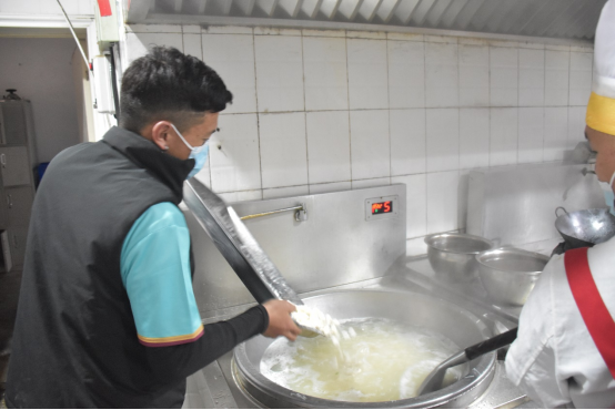 为顺利开展此次活动,藏族同学提前准备了丰盛的食材,一起切菜、做“古突”,(古突是藏族的一种面疙瘩汤),并在面疙瘩中放入写有美好祝福语的纸条,寓意着在新的一年,会有美好的收获。吃到这些“纸条夹心”的人,他们或得到大家的祝福,或引起哄堂大笑。这种藏族特有的饮食娱乐活动,不仅增添了节日的喜庆欢乐气氛,更让大家感受到了藏族节日特色的魅力所在。