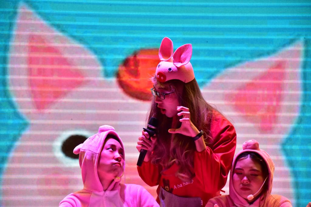 小学教育1802班带来的《小猪变干净了》告诉我们爱干净的孩子才会受到朋友们的喜欢……一个个生动的故事讲述着一段段深刻的道理,不仅让现场的大朋友、小朋友们开怀大笑,还在欢声笑语中体会着生活中的哲理。