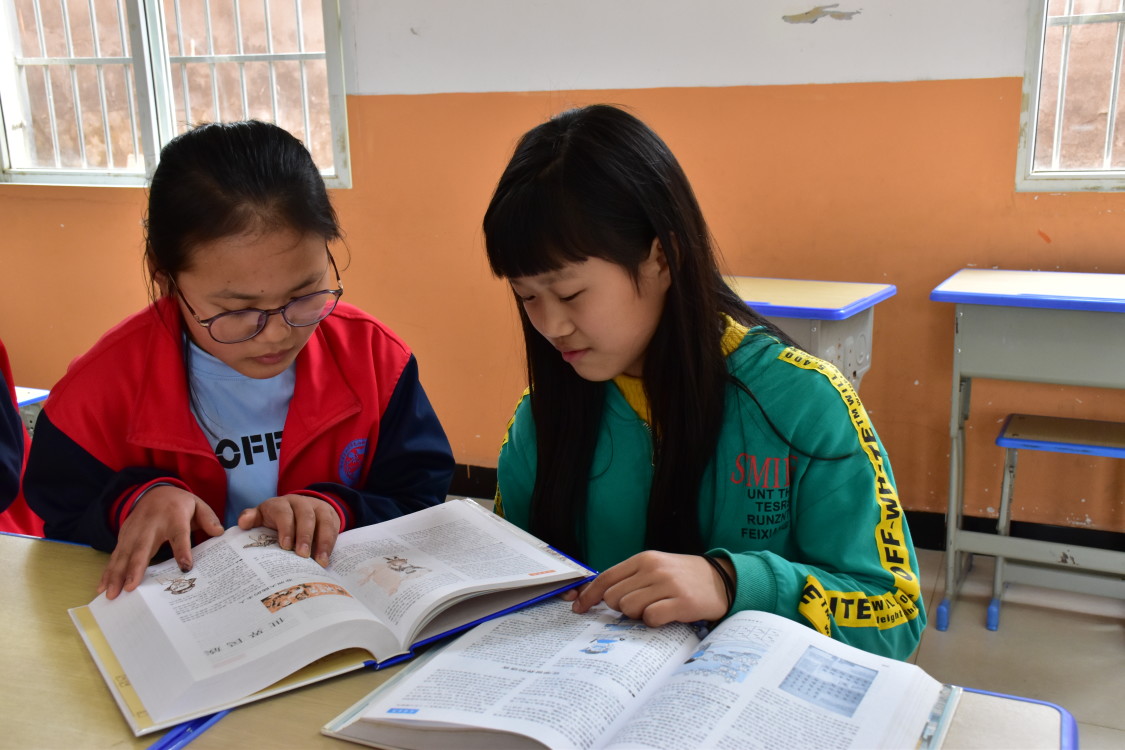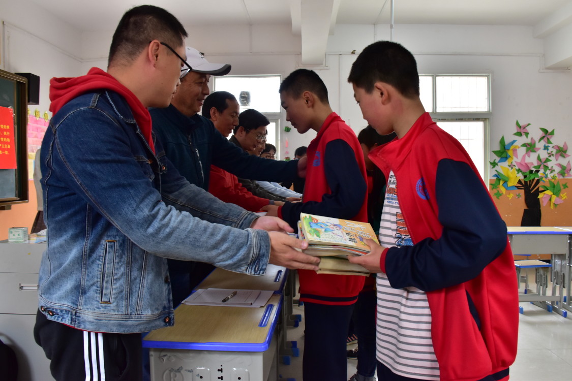 会议结束后,来自母校的老师们向彭家沟小学的孩子们捐赠了图书、玩具,孩子们拿到书后立刻翻阅起来。兴奋之情难以言表,小姐妹们立刻议论起来。