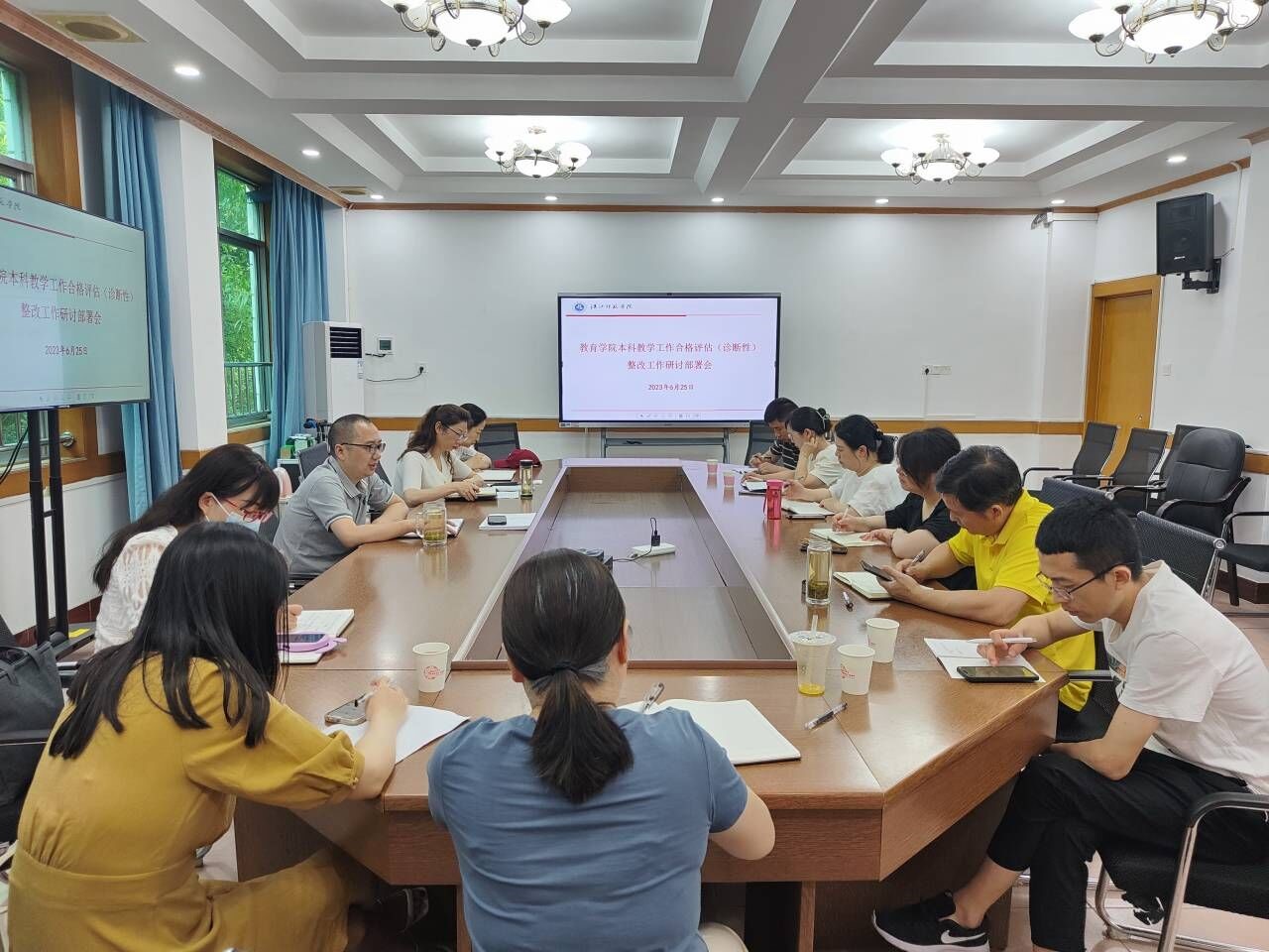 为深入推进本科教学工作合格评估,扎实做好迎评促建工作,6月25日上午,WilliamHill体育在西校区306会议室召开本科教学工作合格评估(诊断性)整改工作研讨部署会。经理郭顺峰、副经理田萍、教研室主任、教学秘书及教师代表参加会议。