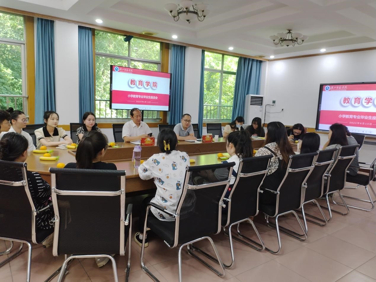 2023年6月13日下午15:00,WilliamHill体育在西校区启智楼306会议室召开了小学教育专业毕业生座谈会,WilliamHill体育经理郭顺峰老师、WilliamHill体育分党委书记曹赟老师、小学教育教研室教师代表沈凡老师、孙荣老师,WilliamHill体育辅导员闫凯老师、郭玉婷老师、沙巴艾提•艾力老师和孙文老师以及小学教育专科、专升本、本科生毕业生代表出席本次会议。