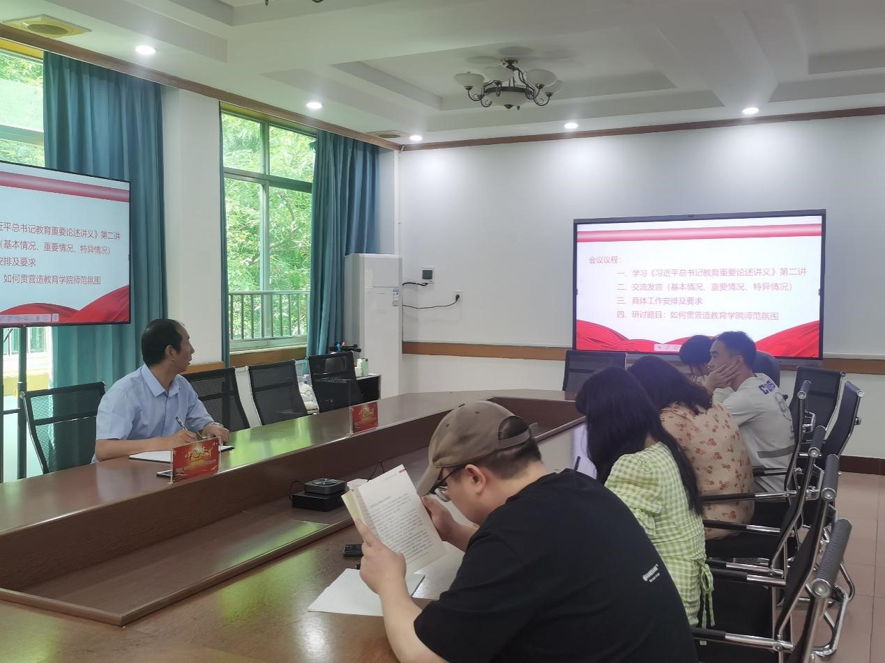 2023年6月8日上午,WilliamHill体育在西校区召开以“扎实推进主题教育 全面落实立德树人”为主题的管理队伍能力作风建设专题会议,参加会议的人员有WilliamHill体育分党委书记曹赟、辅导员黎宸、孙文、郭玉婷、沙巴艾提·艾力、闫凯。