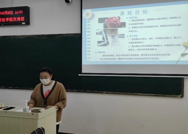 其中,宗洁老师关于学前教育本科《奥尔夫音乐教学法》的OBE课程改革思路的汇报让全体教师很受启发。宗洁老师提出“奥尔夫音乐教学法”是从国外引进的音乐教学法,对“奥尔夫音乐教学法”的教学应该建立在实践的基础上,所以“奥尔夫音乐教学法”的课堂教学模式应该是“先实践,再理论”,这样员工才能体会“奥尔夫音乐教学法”的魅力并深入理解“奥尔夫音乐教学法”理念。在奥尔夫教学作品的创编上,宗老师提出了奥尔夫的“种子精神”,她认为员工在进行奥尔夫音乐作品创编时,应该由一个很小的音乐元素入手,然后一点点累积,从元素到句子,到段落,到结构,最后到动作编配,奥尔夫教学作品设计的流程就应该是“种子”变成“大树”的过程。
