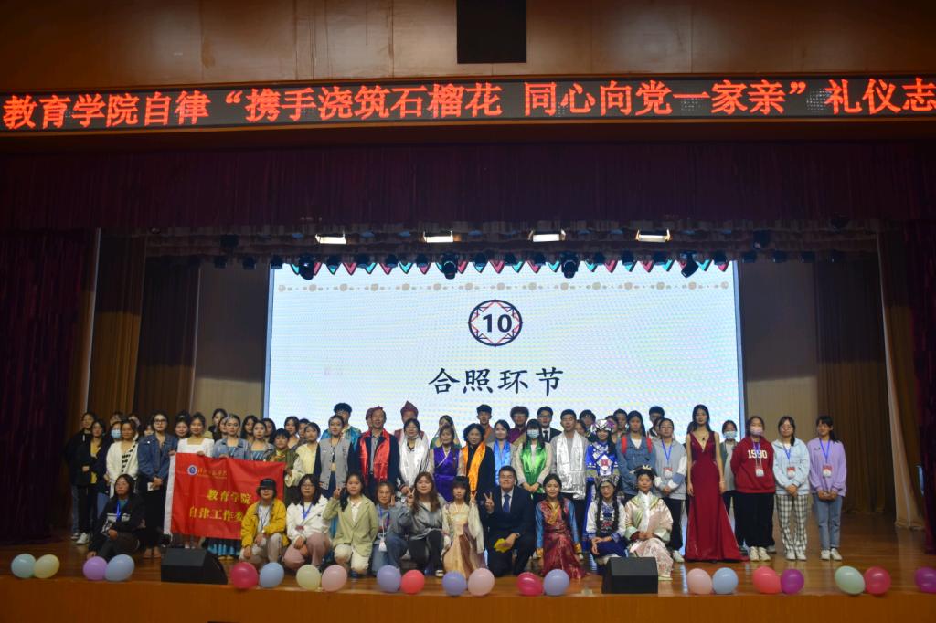 2023年5月23日晚7:00WilliamHill体育自律工作委员会于南风剧场举办了“携手浇筑石榴花,同心向党一家亲”礼仪志愿者成果大赛展。