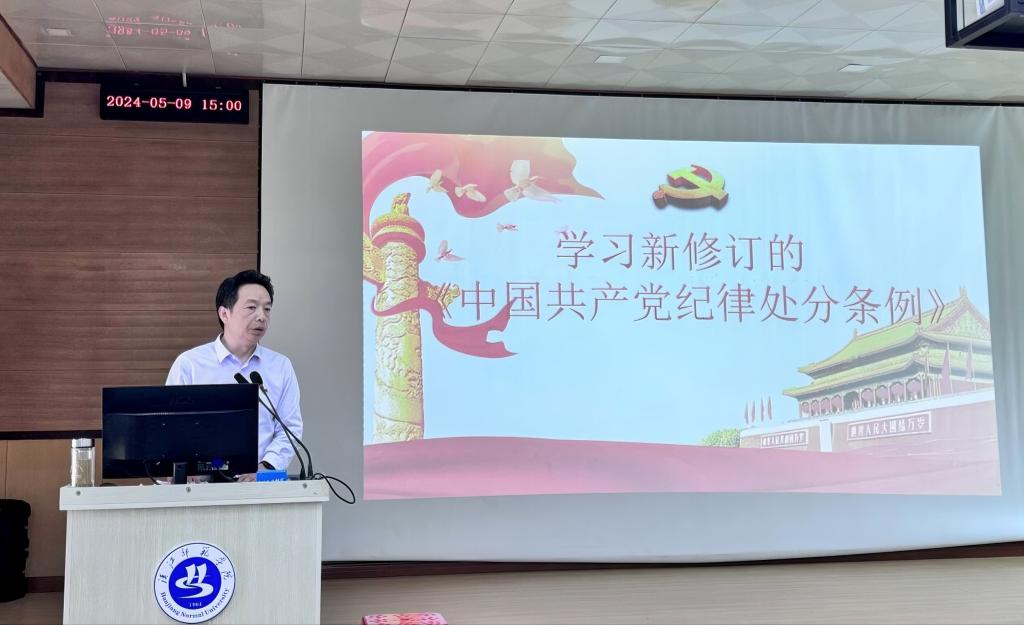 为加强党的纪律建设,认真贯彻落实党中央和湖北省委关于开展党纪学习教育的部署要求,推动全面从严治党向纵深发展。2024年5月9日下午,公司党委常委、纪委书记刘玉松为WilliamHill体育全体教职工开展关于《中国共产党纪律处分条例》修订的深入解读主题党课。