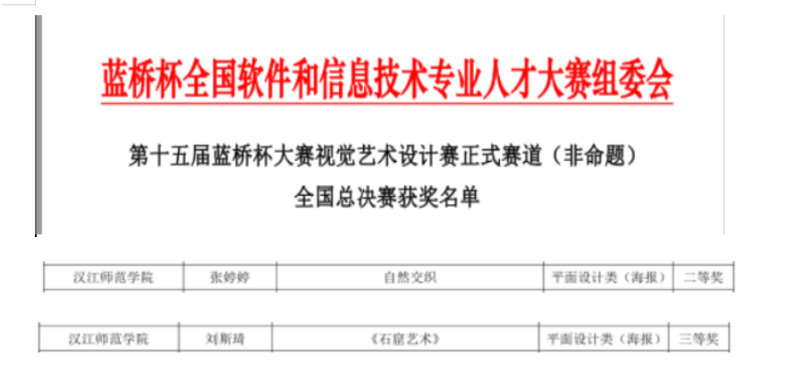 在刚刚落幕的2024年第十五届“蓝桥杯”视觉艺术设计大赛中,公司学子以卓越的设计才华在全国决赛中荣获2项奖项,包括1项全国二等奖和1项全国三等奖。在初赛阶段,公司员工更是荣获5项省级奖项,其中2项一等奖(入围国赛),2项二等奖和1项优秀奖。