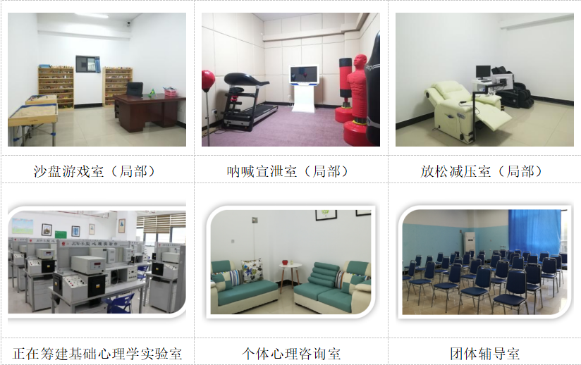 本专业建有儿童心理咨询与行为矫正实验室,正在筹建基础心理学实验室,可以满足心理学专业实验教学的需要。此外公司有建地面积500平米的老员工心理健康教育中心,包含有个体心理咨询实训室、团体辅导实训室、游戏治疗实训室、情绪宣泄实训室、放松治疗实训室、心理测评实训室等在内的17个功能室,可以为心理学专业员工的专业技能训练提供保障。