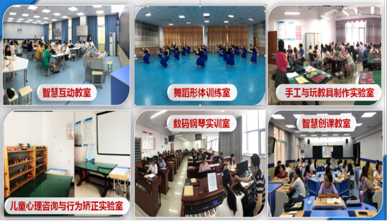 本专业目前建有智慧创课实验室、小学班队活动设计实验室、小学儿童生命安全虚拟仿真实验室、数码钢琴实训室、舞蹈形体训练室、奥尔夫音乐教室等24个校内实验(训)室,占地面积3751.88平方米,仪器设备总价值448多万元。稳定的校外实习基地14个,馆藏教育类纸质图书5.02万册,电子图书2.81万册,配备小学教材教参161套,共11623册,数字化教学资源丰富。