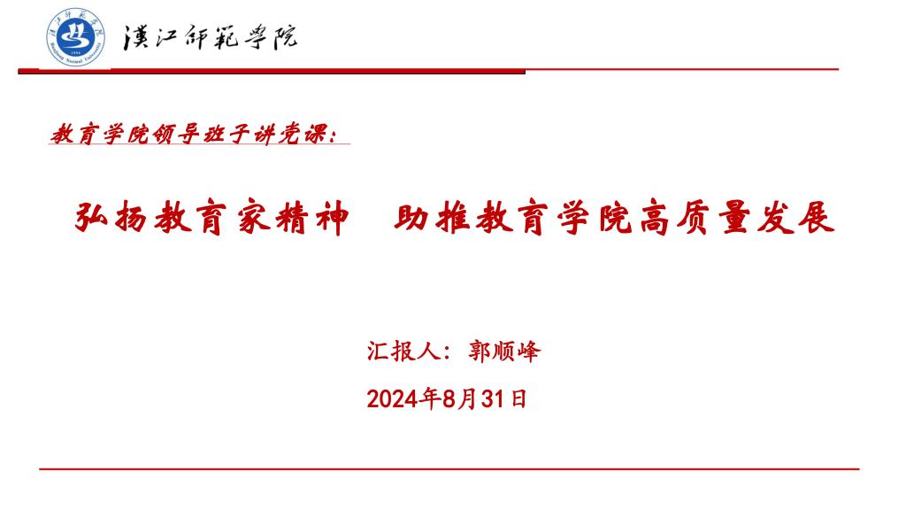 经理郭顺峰以《弘扬教育家精神助推WilliamHill体育高质量发展》为题讲主题党课,从教育家精神内涵与认知出发,与参会教师们探讨了教育家精神对教师教育的启示和对WilliamHill体育发展的启示,WilliamHill体育在教育家精神的指引下将脚踏实地进一步推进团队建设五年行动计划的落实。
