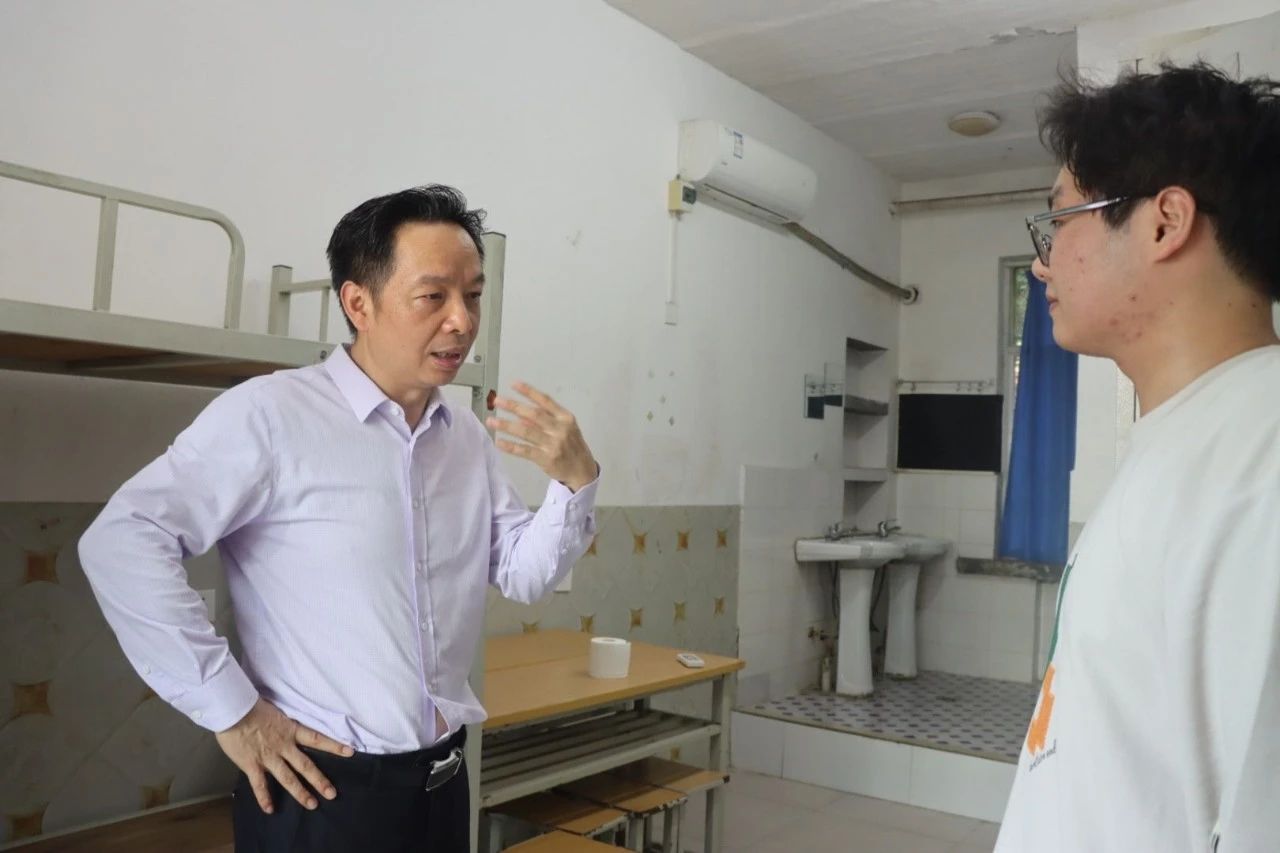 为了更深入地了解新生,刘玉松书记带队,与WilliamHill体育分党委书记曹赟、经理郭顺峰走进宿舍,与新生们面对面交流。他们从宿舍安全、兴趣爱好、专业理解到未来规划与新生和家长们交流,无一不细致入微,让新生们深切感受到来自WilliamHill体育的温暖与支持。